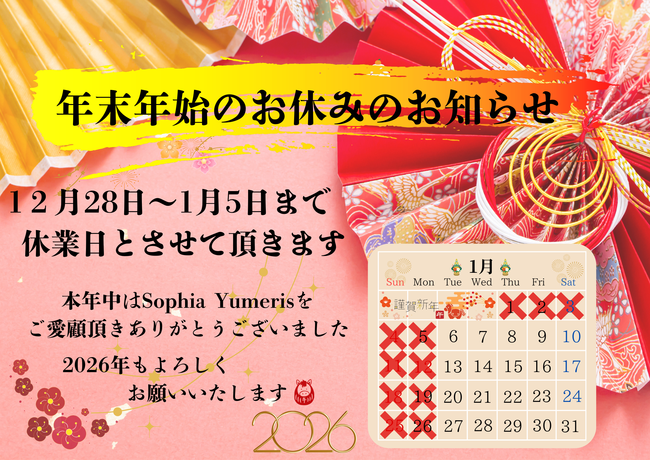 今年も一年、Sophia Yumerisをご愛顧頂き、ありがとうございました。