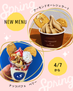【ヘーゼルショコラ】に変わり 【アーモンドオーレ】が登場です! 昨年秋に販売していた物からバージョンアップして登場‼ 更に滑らかさが増して、くちどけ良く 味わいも増しました♪ それに伴いパフェ […]
